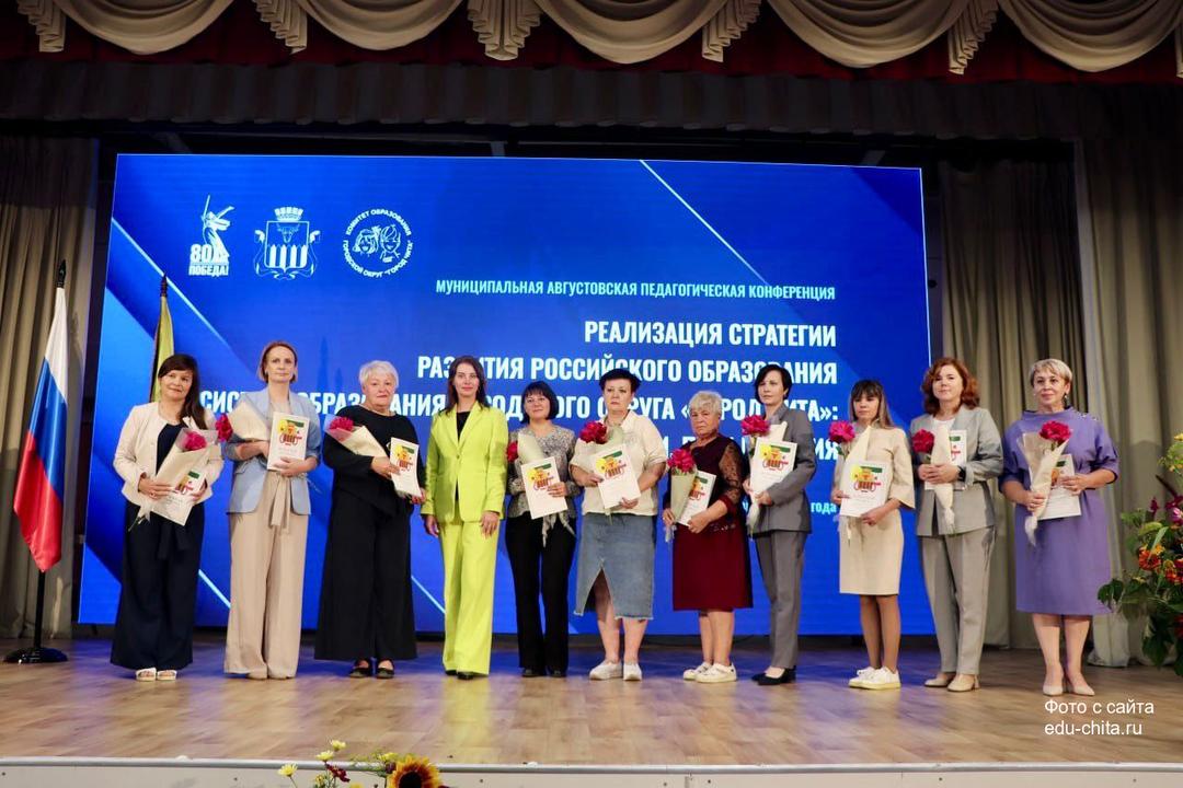 Я с удовольствием вручила лучшим педагогам ведомственный знак «Отличник просвещения» за заслуги в труде и продолжительную работу в сфере образования, а также Почетные грамоты и Благодарственные письма администрации Читы. Благодарственные письма были вручены и нашим добрым друзьям за плодотворное сотрудничество в сфере воспитания подрастающего поколения и сотрудничество с системой образования городского округа.