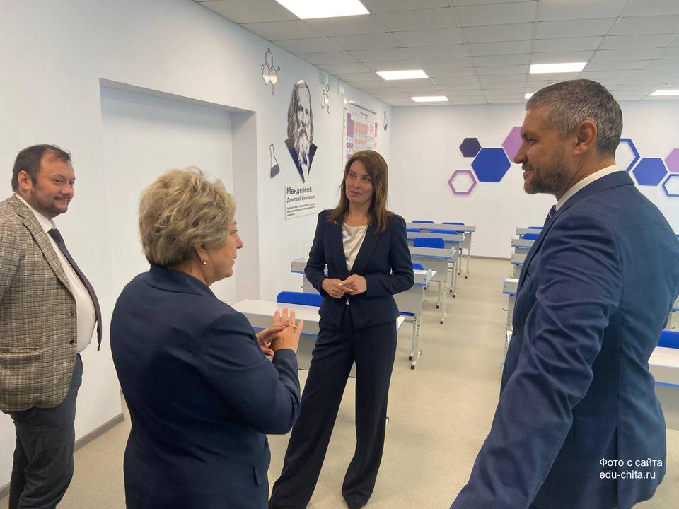 По завершении торжественной линейки гости осмотрели обновленные учебные кабинеты, столовую и актовый зал школы.