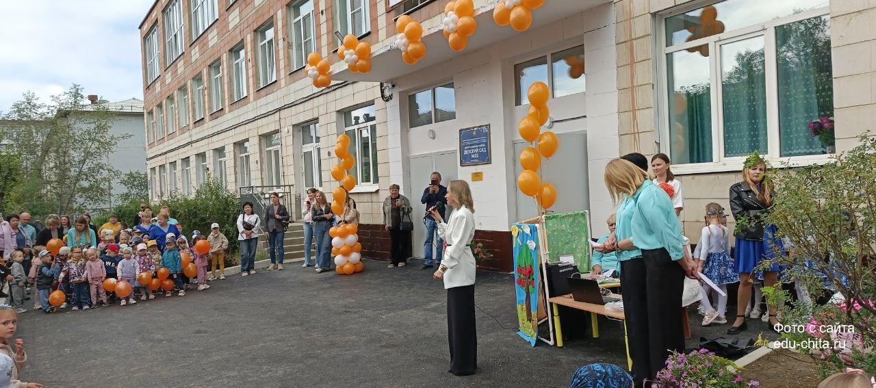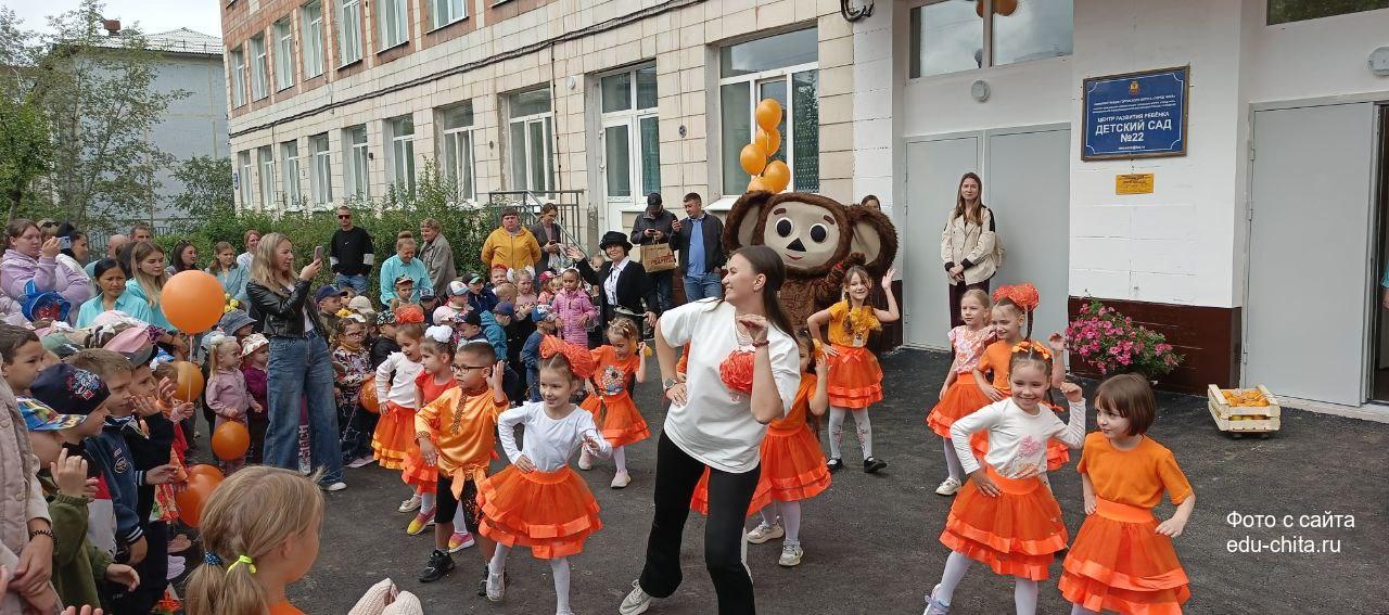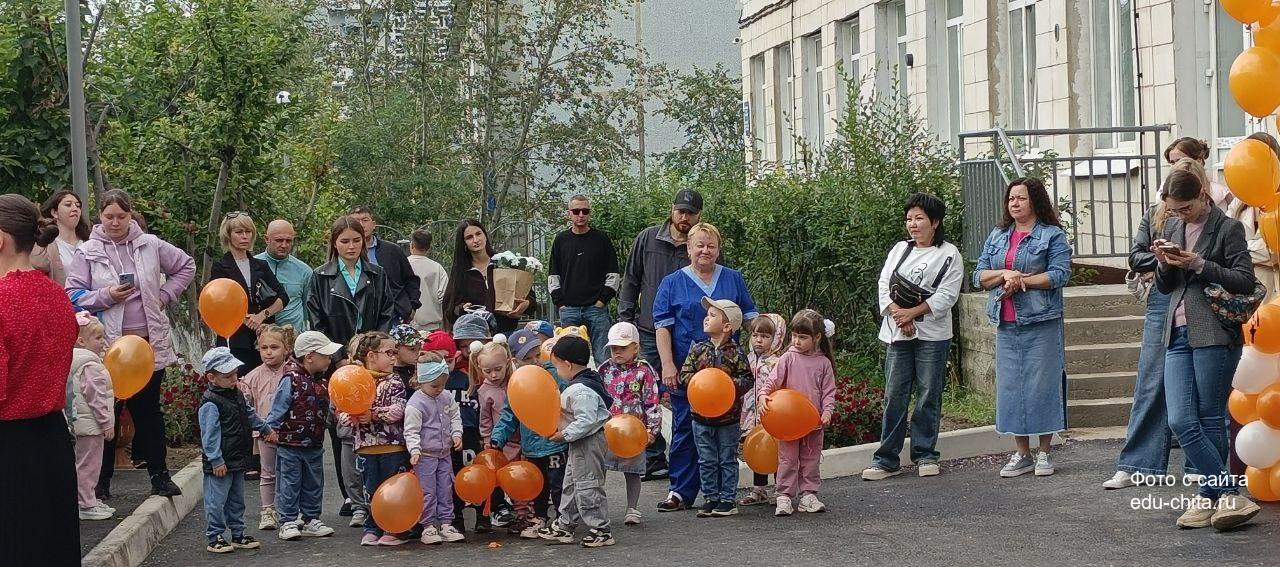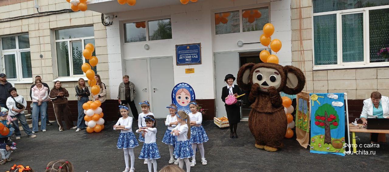 На торжественном открытии детского сада присутствовали почетные гости, родители, а ребят встречали их любимые герои Чебурашка и Шапокляк.