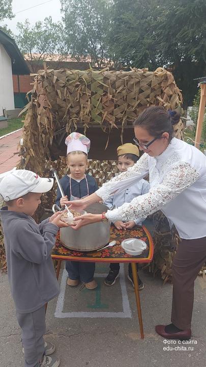 На территории детского сада были организованы тематические площадки: выставка книг о Великой Отечественной войне, мини-музей "Эхо войны", выставка детско-родительских творческих работ, интерактивная зона "Полководцы", полевая кухня.
