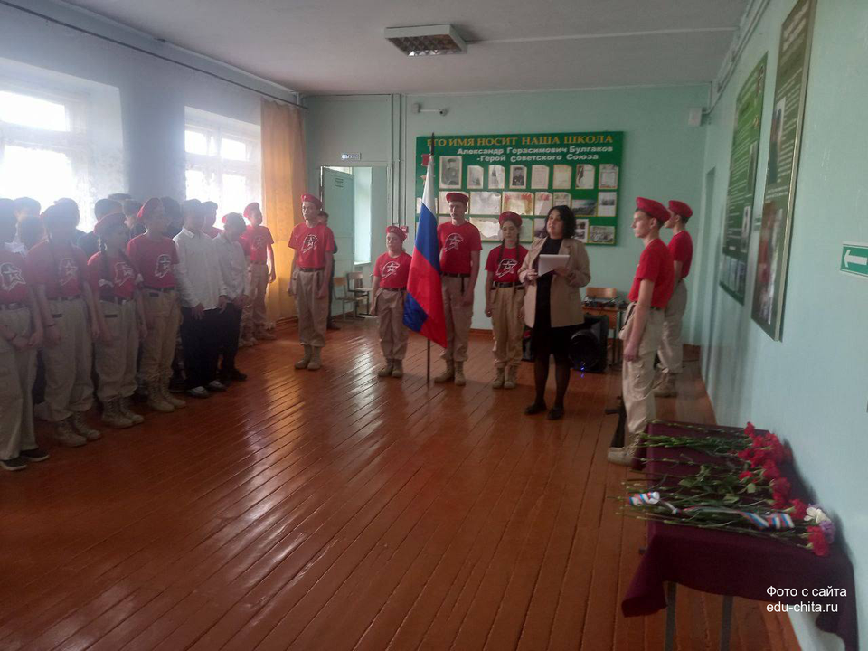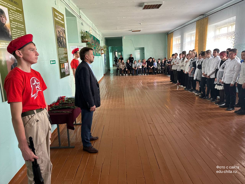 На мероприятии присутствовали глава администрации Черновского района Василий Турсабаев, председатель ТОС п.ЧЭС Дмитрий Тюменцев, родные и близкие героев. Право внести флаг и нести вахту памяти было предоставлено знаменной группе юнармейского отряда. Теперь ученики школы будут хранить память о героях нового времени и передавать следующим поколениям.