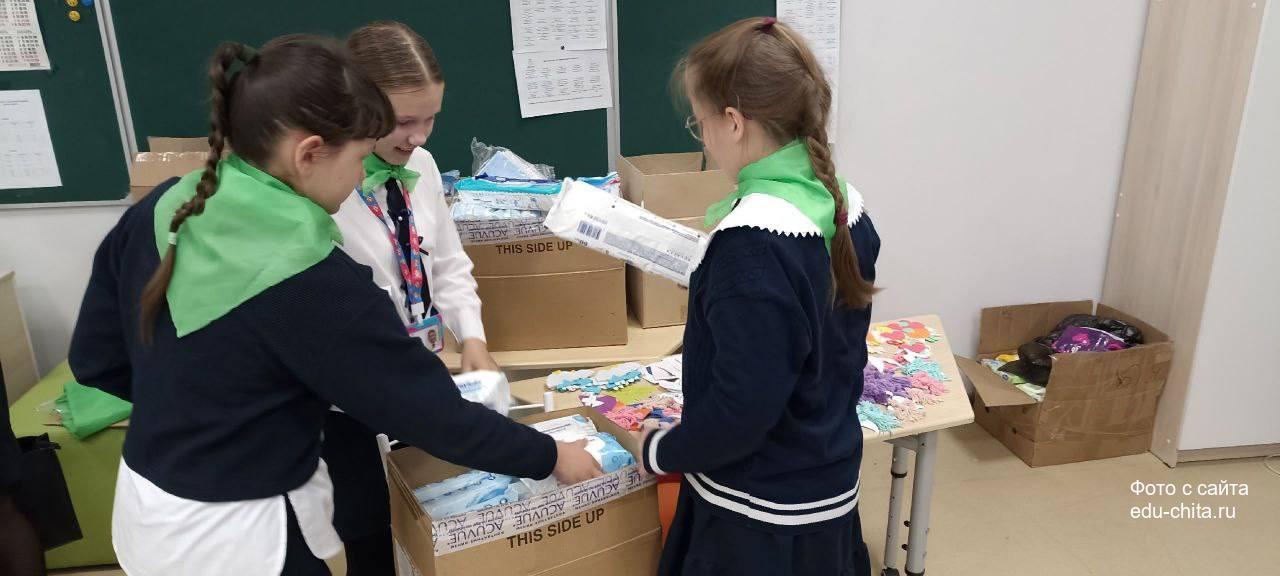 Вожатые школы №55 Наталья Николаевна Клочко и Татьяна Георгиевна Денисова организовали в школе акцию помощи участникам специальной военной операции. Они объединили усилия детских объединений «Импульс» и «Робби».