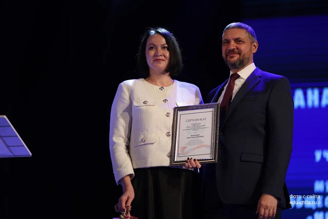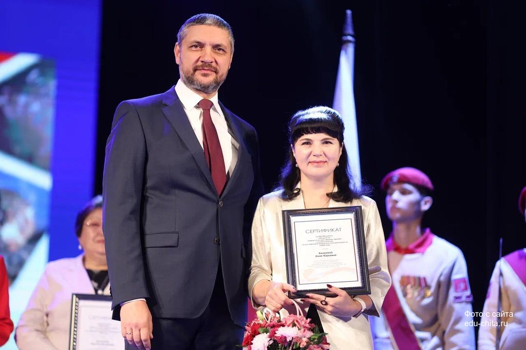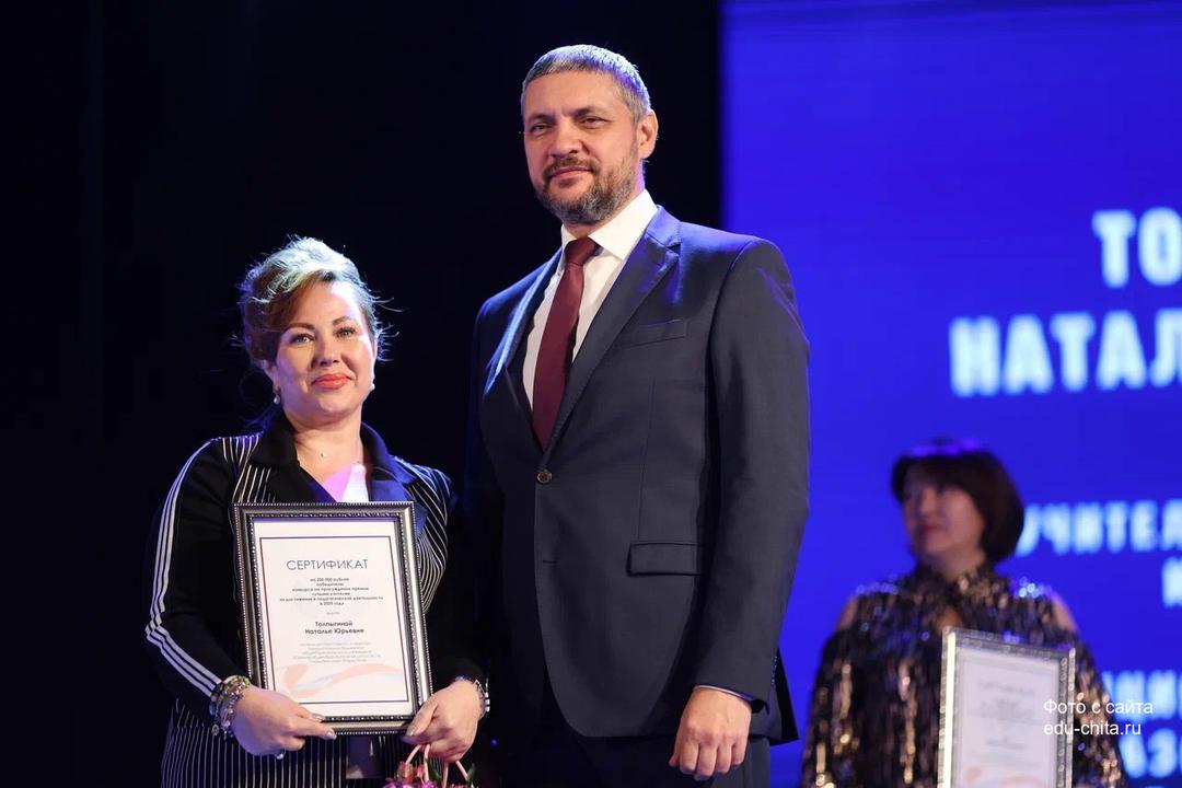 Премии удостоены учитель русского языка и литературы читинской школы № 19 Наталья Толпыгина, учитель истории школы №1 Александра Гагарина, учитель начальных классов школы №9 в Чите Екатерина Стрельникова, учитель биологии и географии школы №19 города Читы Инна Банеева, учитель иностранных языков Анастасия Куюмджян.