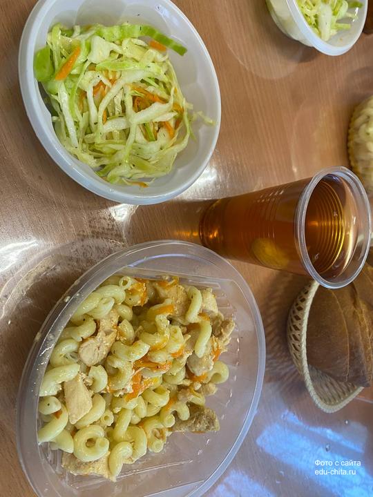 Родители положительно оценили горячее питание, которое получают их дети. На завтрак учащимся подали рожки с курочкой, компот и овощной салат.