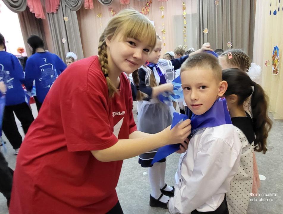 Старшие ребята показали зажигательный флешмоб под гимн "Орлят России", а юные "орлята"-второклассники прочитали напутственные стихи. Также состоялась торжественная церемония повязывания галстуков, которую дети-наставники провели вместе с посвящаемыми.