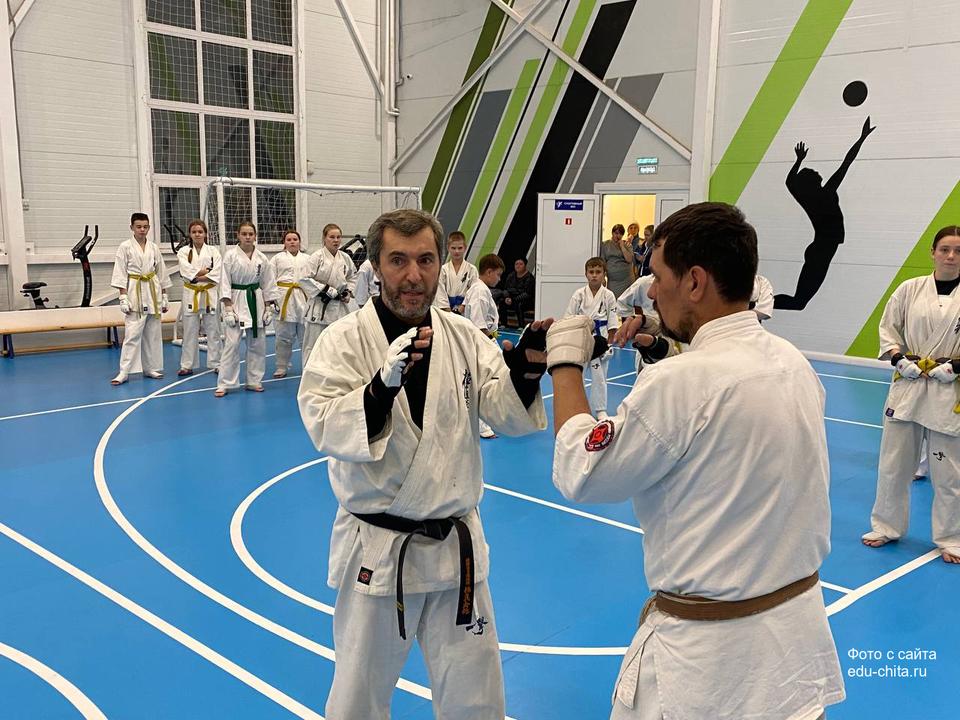 Четырехкратный чемпион мира по киокусинкай Хаид Мантаев провел мастер-класс для воспитанников-каратистов в спортзале школы №33 в Чите. Новый спортивный зал был построен в 2023 году на средства президентской субсидии по поручению полномочного представителя Президента РФ в Дальневосточном Федеральном округу Юрия Трутнева при поддержке Минвостокразвития России и региональных властей.