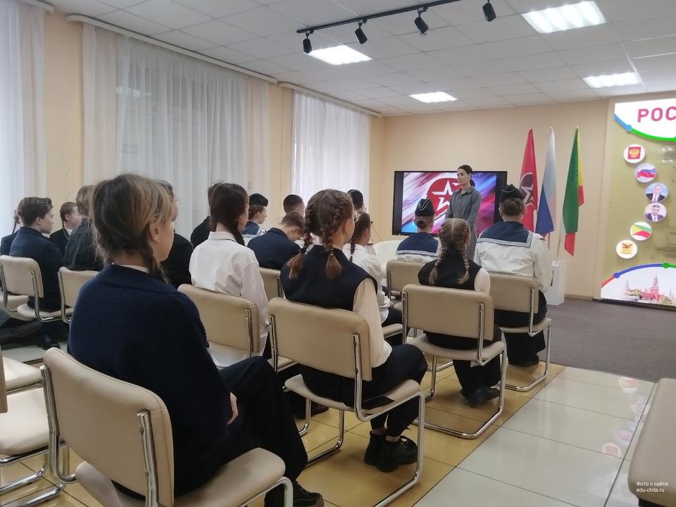 В рамках рубрики «Профориентация для юнармейцев» выступил представитель Пограничного управления ФСБ России в Забайкальском крае. Ребята узнали о требованиях к кандидатам и условиях поступления в учебные заведения пограничной службы. С интересом они слушали о различных специальностях, которые можно получить после окончания обучения. Особое место в беседе было посвящено специфике работы по защите и охране государственной границы пограничными органами, а также важности и значимости службы в пограничных войсках.