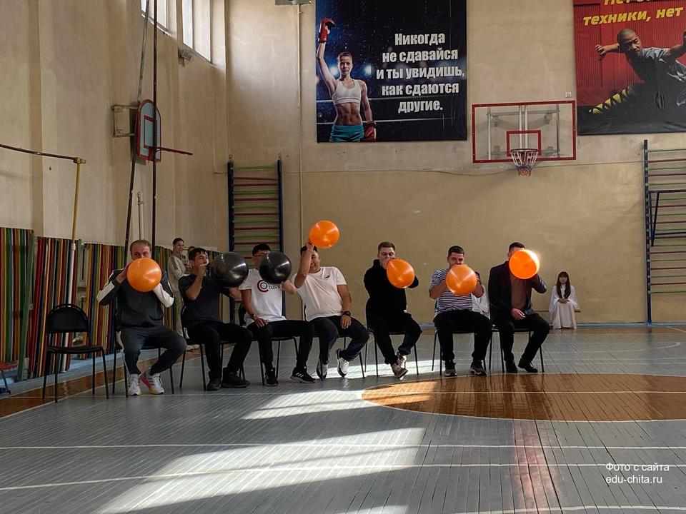 Но главное развлечение — спортивная игра «Отцы-молодцы». Папы участвовали в конкурсах, выполняли задания, проверяя ловкость. Между соревнованиями дети поздравляли пап песнями и стихами. Например, ребята из третьего и восьмого классов спели песню «Папа может», театральная студия показала постановку, а девочки из седьмого класса исполнили задорные частушки.