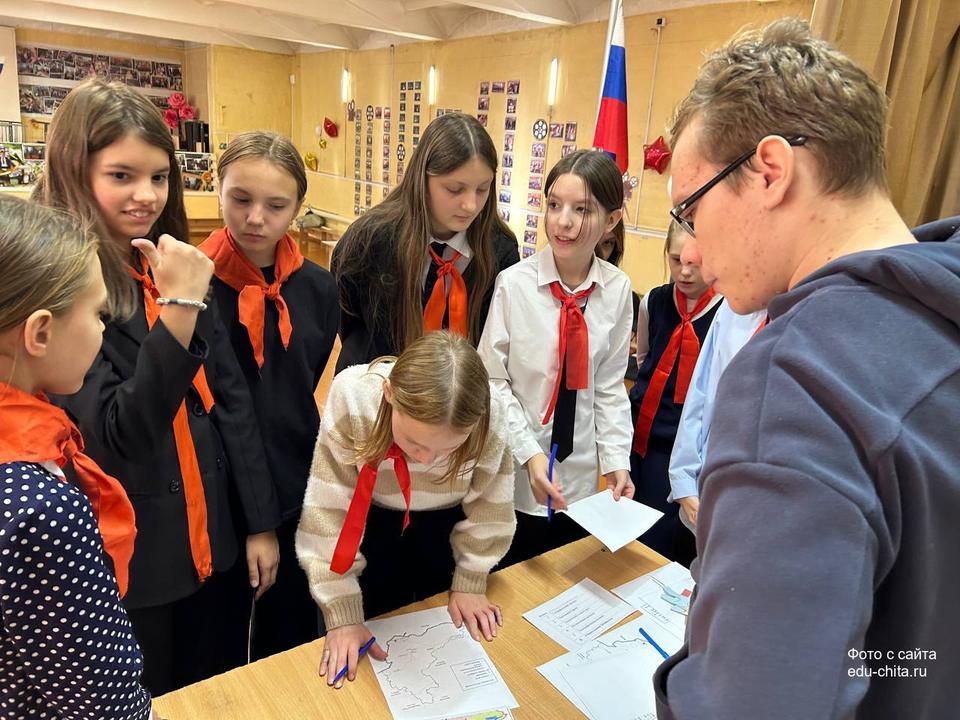 В детском объединении «Алые паруса» на базе школы №16 под руководством старшей вожатой Элико Автандиловны Крыловой состоялась краеведческая игра — квест «Забайкальский маршрут».