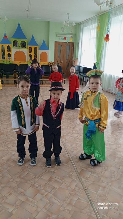 В детском саду № 75 прошёл фестиваль «Мы наследники традиций». Весь день воспитанники детского сада вместе с воспитателями и помощниками воспитателей были одеты в национальные костюмы, представляя разные народы: русских, бурятов, эвенков, цыган, татар, китайцев, узбеков, а также семейских из Забайкалья.