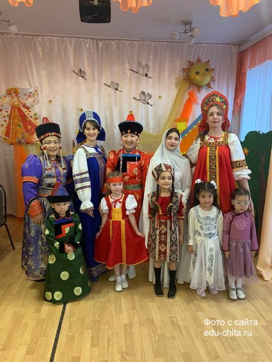 Детский сад № 71 — это яркий пример дружного воспитания детей разных национальностей. На фестивале родители и дети знакомили гостей с костюмами, обычаями, традициями и культурой народов, которые живут в Забайкальском крае.