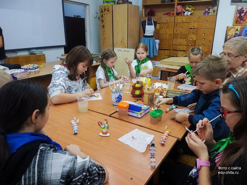 Любители творчества занимались в мастерской «Русский сувенир», создавали открытки для родителей и участвовали в конкурсе плакатов «Я, ты, он, она — вместе дружная страна!».