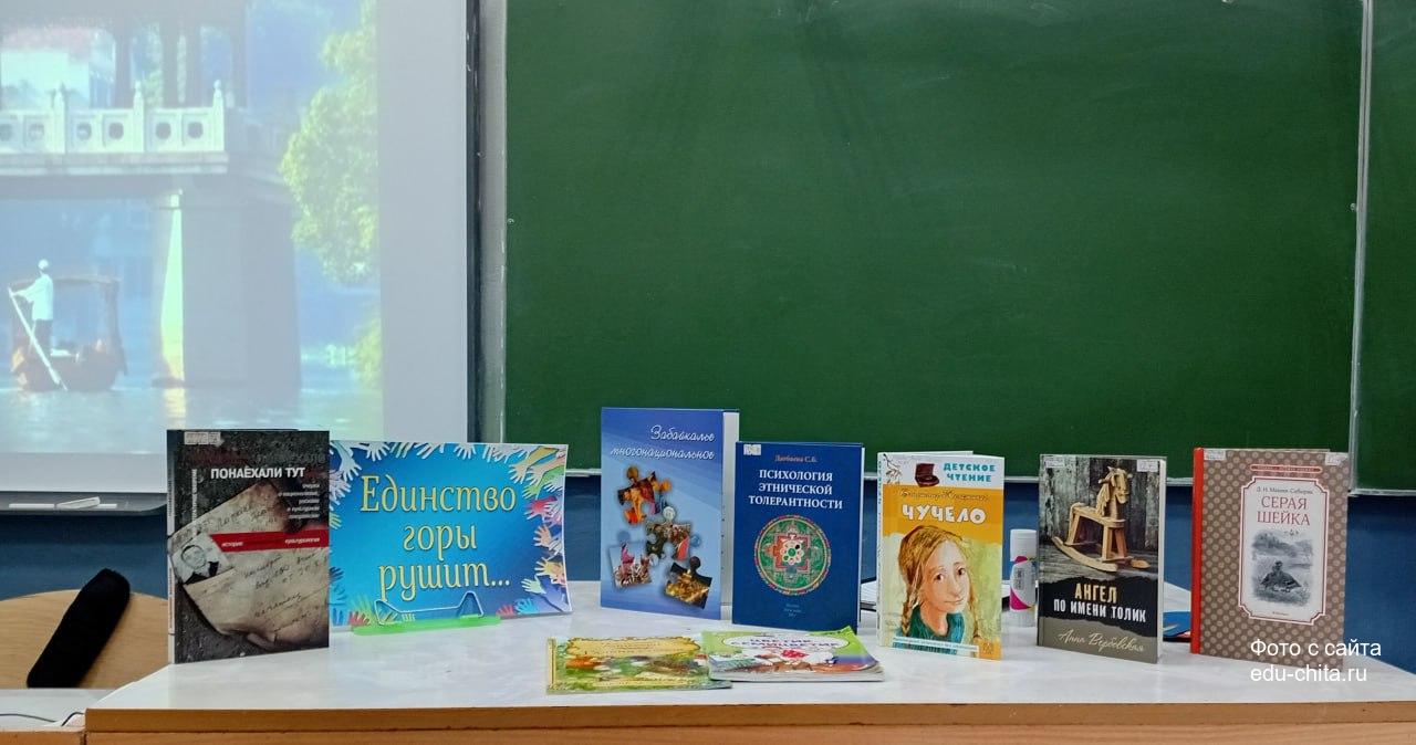📚Вниманию ребят была представлена книжная выставка «Единство горы рушит» и проведён обзор художественных произведений, раскрывающих тему толерантности: Г. Троепольский «Белый Бим, Чёрное ухо» В. Железняков «Чучело», Э. Портер «Полианна», О. Уайльд «Мальчик-звезда» и др.