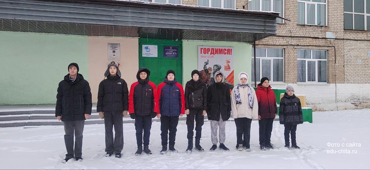 Юнармейцы отряда «Патриот» школы № 10 города Читы провели акцию по уборке школьной территории. Ребята вместе со своим руководителем Ариной Сергеевной Быковой вышли на заснеженный школьный двор и навели там порядок.