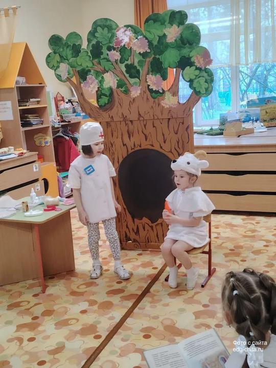Кроме того, для младших групп «Пчелки», «Непоседы» и «Золотая рыбка» была проведена театрализация «Айболит на новый лад», а с логопедической группой было организовано открытое занятие по сказке о рыбаке и рыбке.