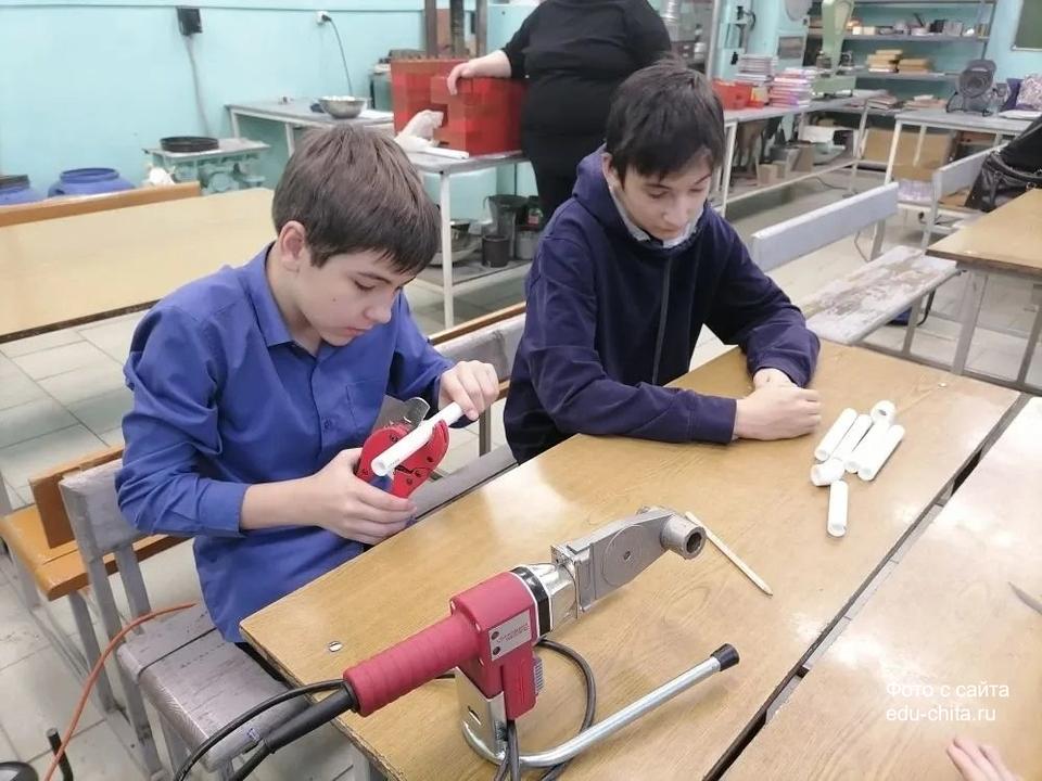 Там ребятам предложили самостоятельно сделать полотенцесушилки из пластиковых труб. Им выдали трубки, уголки для соединения и ножницы. Ребята измерили, нарезали трубки на нужные куски. Им нужно было спаять все стыки, держа в руках паяльник и считая до пяти, чтобы прогреть места соединения. При этом нужно было соблюдать правила безопасности: спрятать длинные волосы, убрать концы шарфов, чтобы не обжечься.