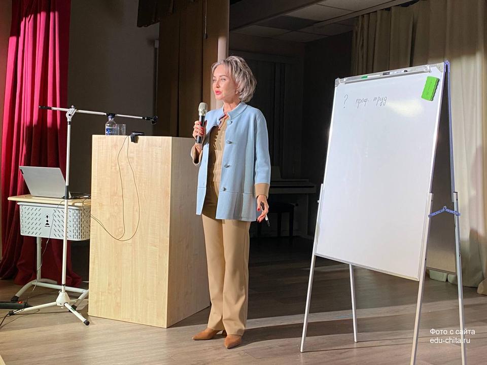 По приглашению комитета образования в Чите с рабочим визитом прибыла директор Лицея «Интеграл», кандидат филологических наук, доцент, почетный работник воспитания и просвещения РФ Анна Леонтьева из города Новосибирска.