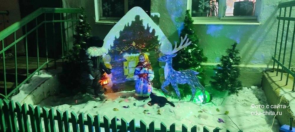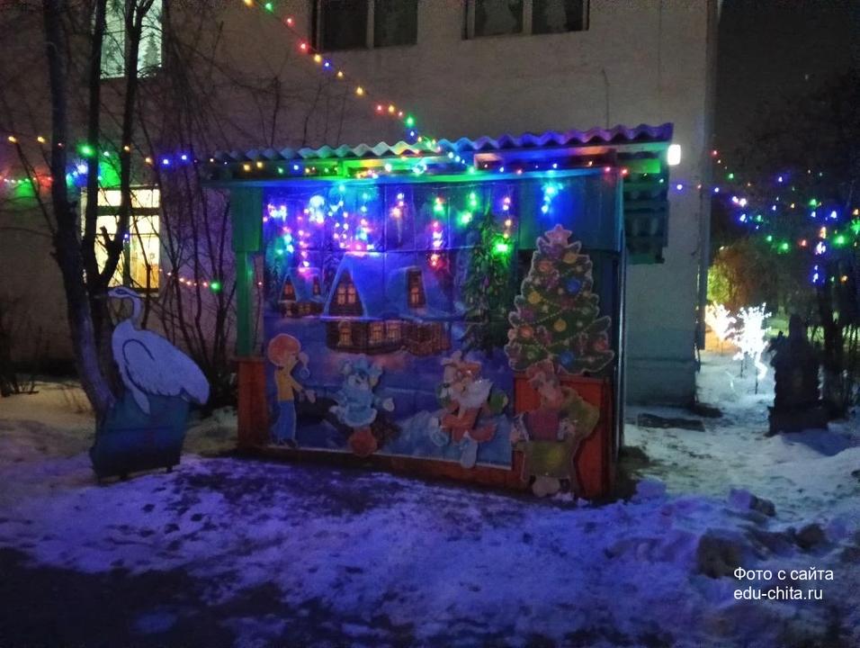 Дошкольные учреждения украшают свои территории, здания и помещения праздничными элементами: яркими шарами, сверкающими гирляндами и нарядными елками.