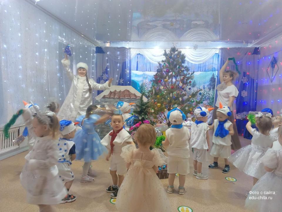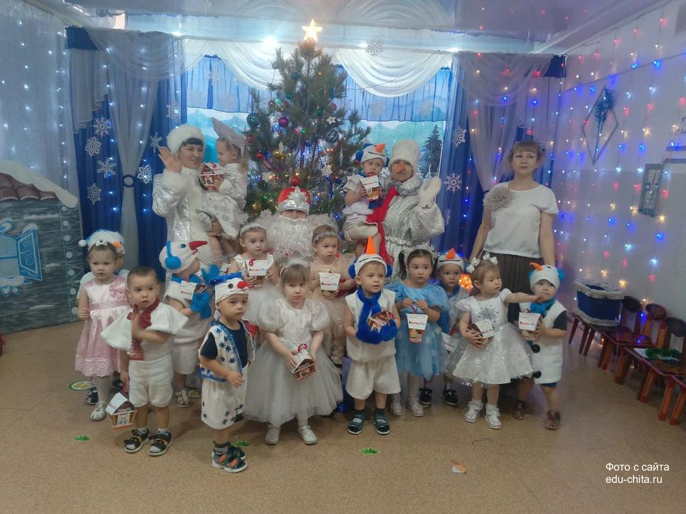 Сегодня прошли первые новогодние утренники для воспитанников младших групп «Гномики» и «Сказка». Ребята в красивых нарядах закружились в новогоднем хороводе, весело играли с сказочными героями Снеговиком, Снежинкой, Кикиморой, танцевали вместе со Снегурочкой. Все малыши получили подарки от Дедушки Мороза. Праздник получился очень весёлый и радостный и оставил много приятных впечатлений и эмоций.