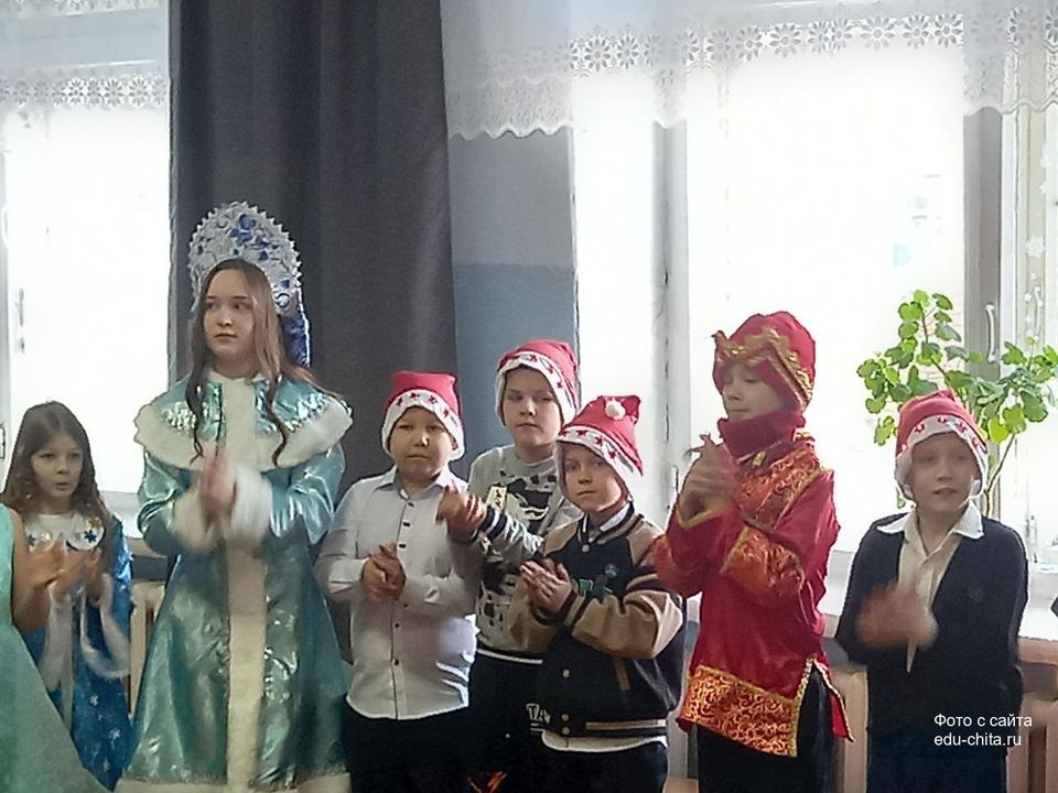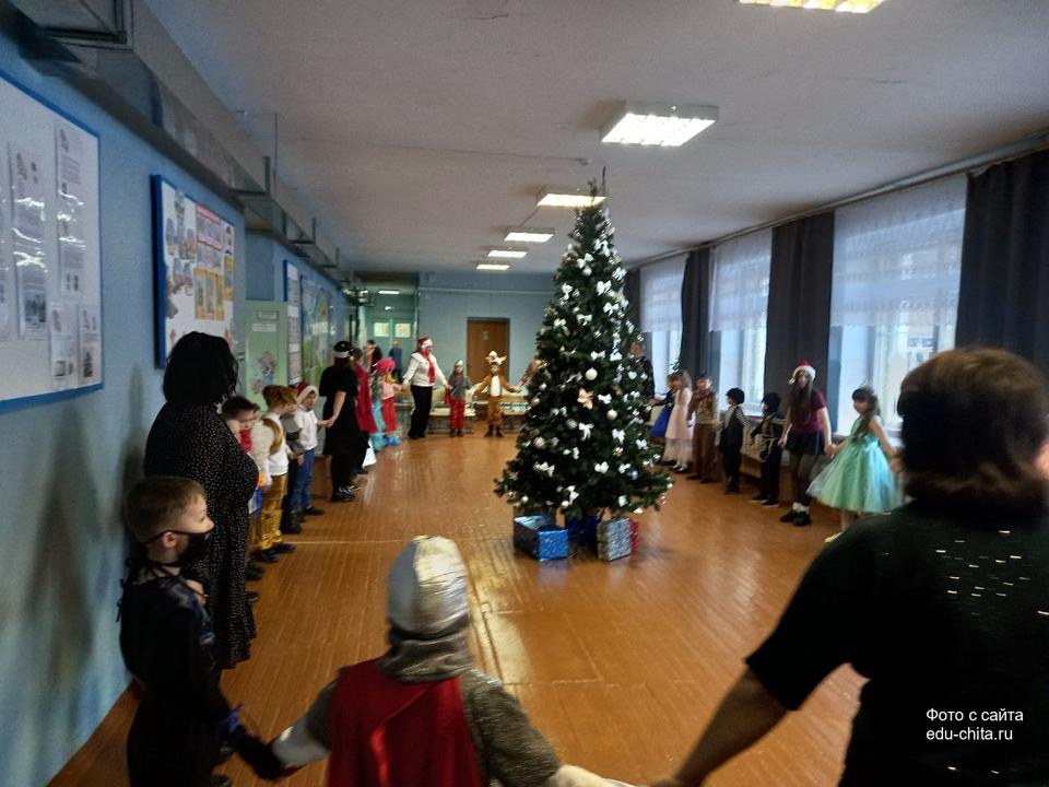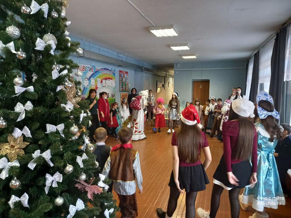 В школе №7 продолжается проведение новогодних мероприятий с участием Деда Мороза и сказочных персонажей.