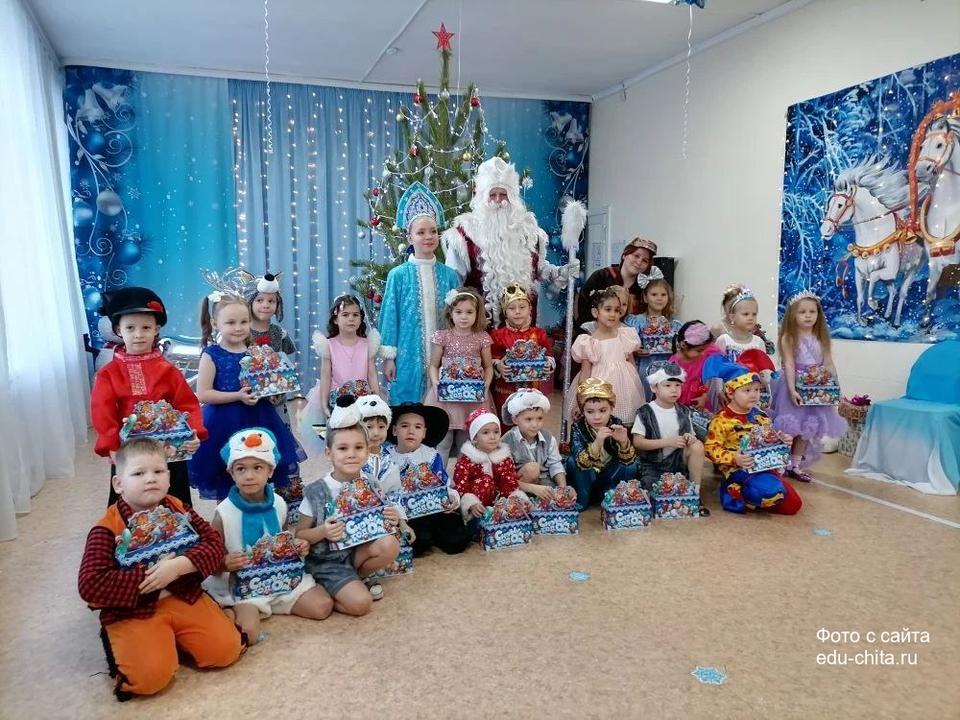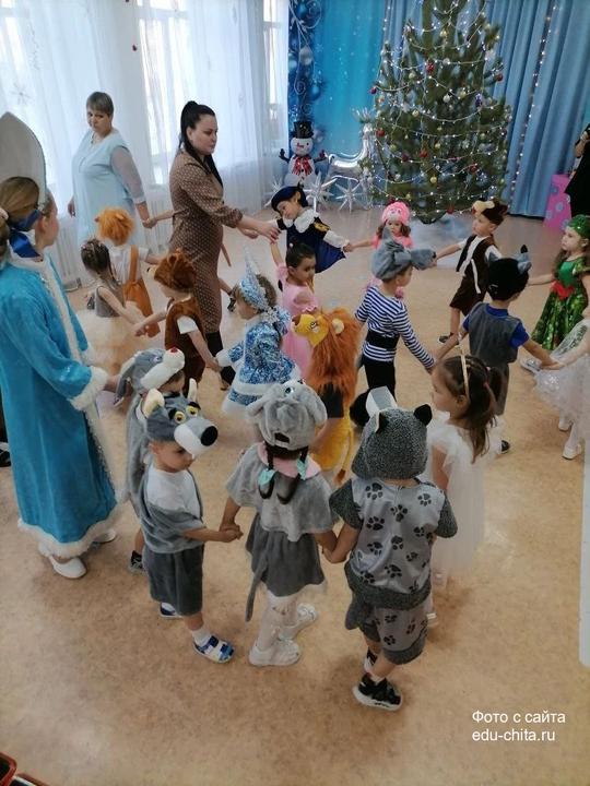На новогоднем празднике присутствовал сказочный персонаж, символизирующий наступающий Новый год — Конёк-Горбунок. В рамках мероприятия дети приняли участие в играх со снежками, танцевальных номерах в валенках Деда Мороза и хороводах с варежками Снегурочки. Также воспитанники детского сада исполнили песни и прочитали стихотворения. После завершения мероприятия детям вручили подарки от Деда Мороза.