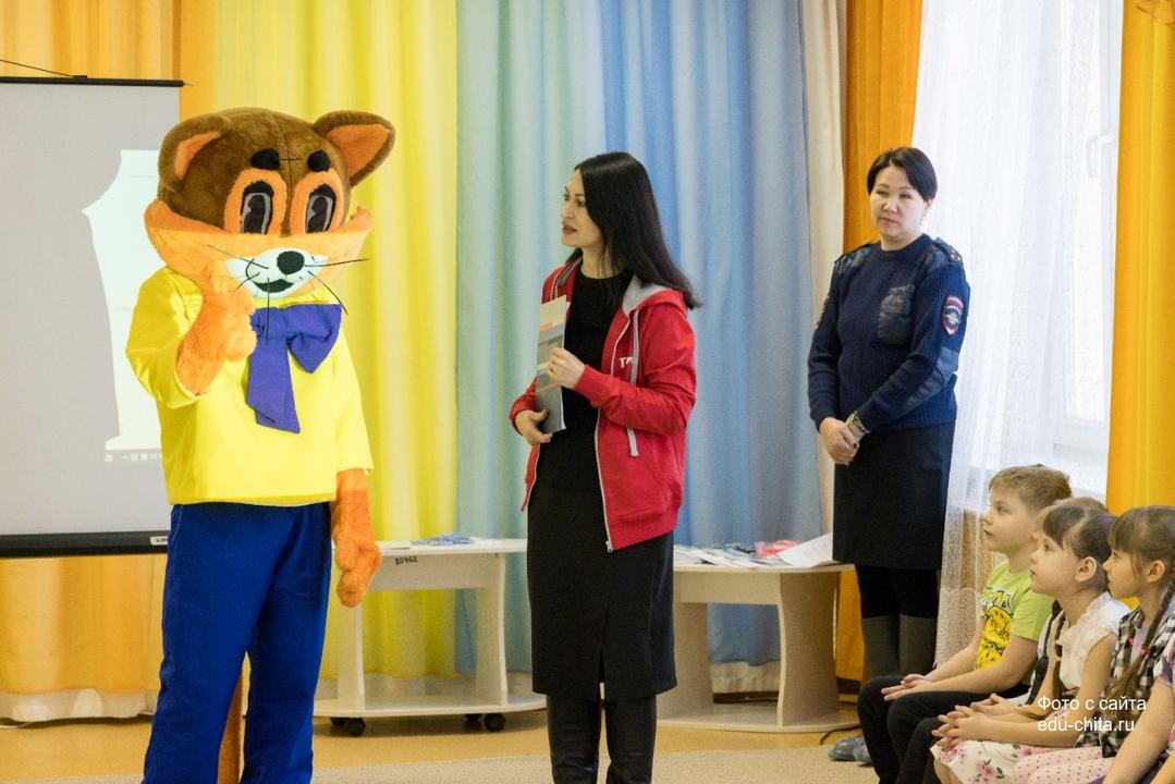 Вместе с сотрудником транспортной полиции и котом Леопольдом зашли в гости в читинский детский сад №12.