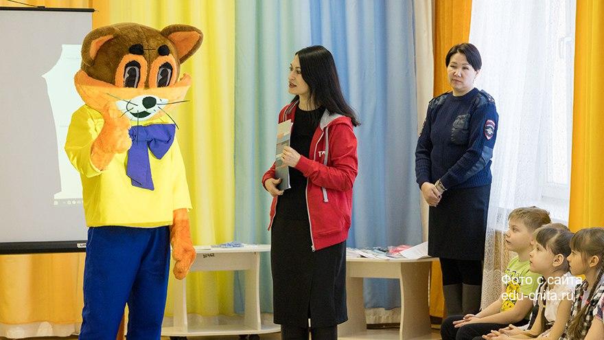 Встречу с воспитанниками читинского детского сада №12 провели в игровом формате с участием аниматора-волонтера в образе кота Леопольда. 35 дошколят посмотрели тематические мультфильмы, узнали от инспектора по делам несовершеннолетних Забайкальского линейного управления МВД на транспорте о том, как себя вести на станциях и в пассажирских поездах, ответили на вопросы тематической викторины и обсудили сюжеты плакатов выставки «Железная дорога БЕЗ ОПАСНОСТИ».