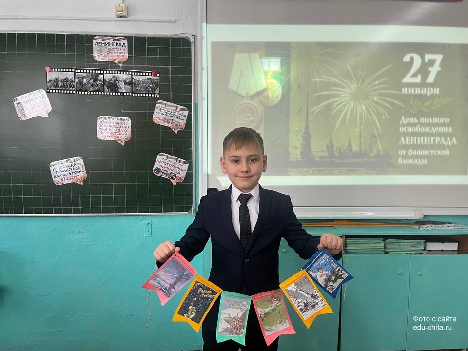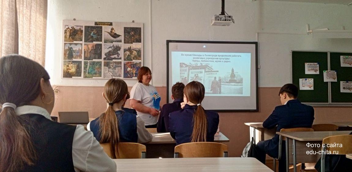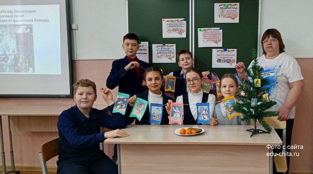 Во время проведения историко-патриотических часов «Блокадной памяти страницы» классные руководители напомнили ребятам о главных событиях в жизни осаждённого Ленинграда и военно-стратегических операциях по его освобождению от фашистской блокады. Ученики смотрели фото- и видеоматериалы, читали письма жителей блокадного города и отвечали на вопросы викторины «Ленинград. Блокада. Память». Учитель русского языка и литературы Садченко Марина Олеговна рассказала ученикам 8 класса Д об истории своей семьи, неразрывно связанной с блокадой Ленинграда.