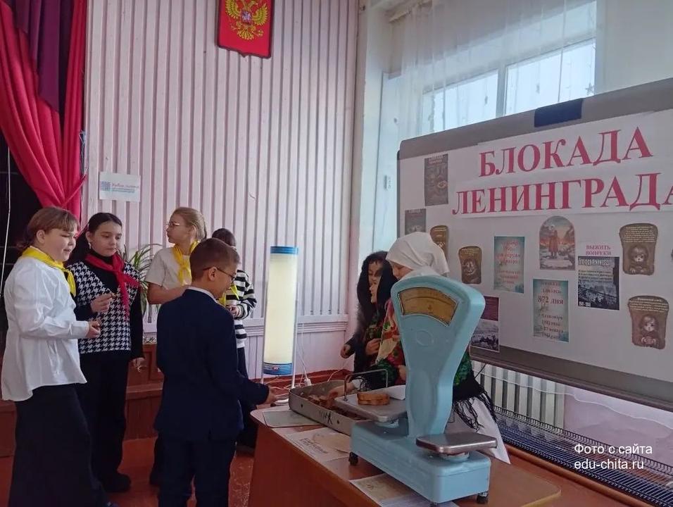 В актовом зале школы создана тематическая зона, позволяющая учащимся визуально ознакомиться с ключевыми аспектами блокадного периода. В частности, посетители могут увидеть символические 125 граммов хлеба, который являлся суточной нормой для жителей города, а также услышать биение метронома, ставшего одним из символов блокады. Зона способствует созданию атмосферы, передающей дух стойкости и мужества ленинградцев.