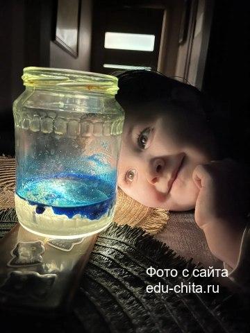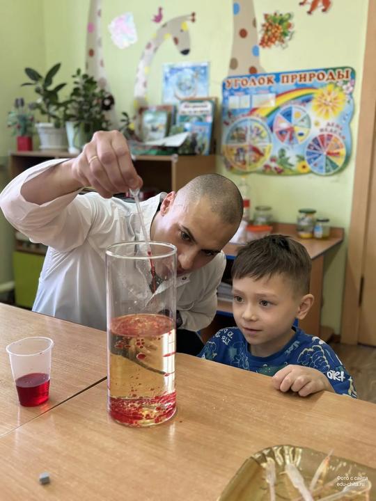 В МБДОУ № 69 дети примерили на себя роль юных ученых. Под чутким руководством педагога дети сделали яркую лаву при помощи масла, красителя, воды и секретной таблетки, которая «включила» извержение.