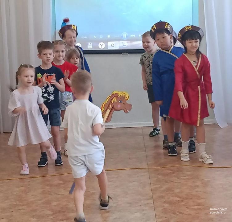 Для детей были организованы беседы, национальные бурятские игры и народный танец-хоровод Ёхор. Этот танец символизирует поклонение Солнцу.
