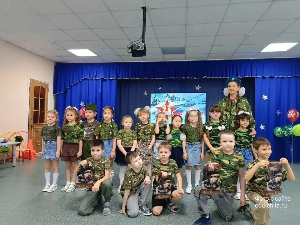 В дошкольных образовательных учреждениях города Читы прошли праздничные мероприятия, посвящённые Дню защитника Отечества. Воспитанники детских садов № 31, № 101, № 44 и № 21 вместе с педагогами запоминающиеся события.