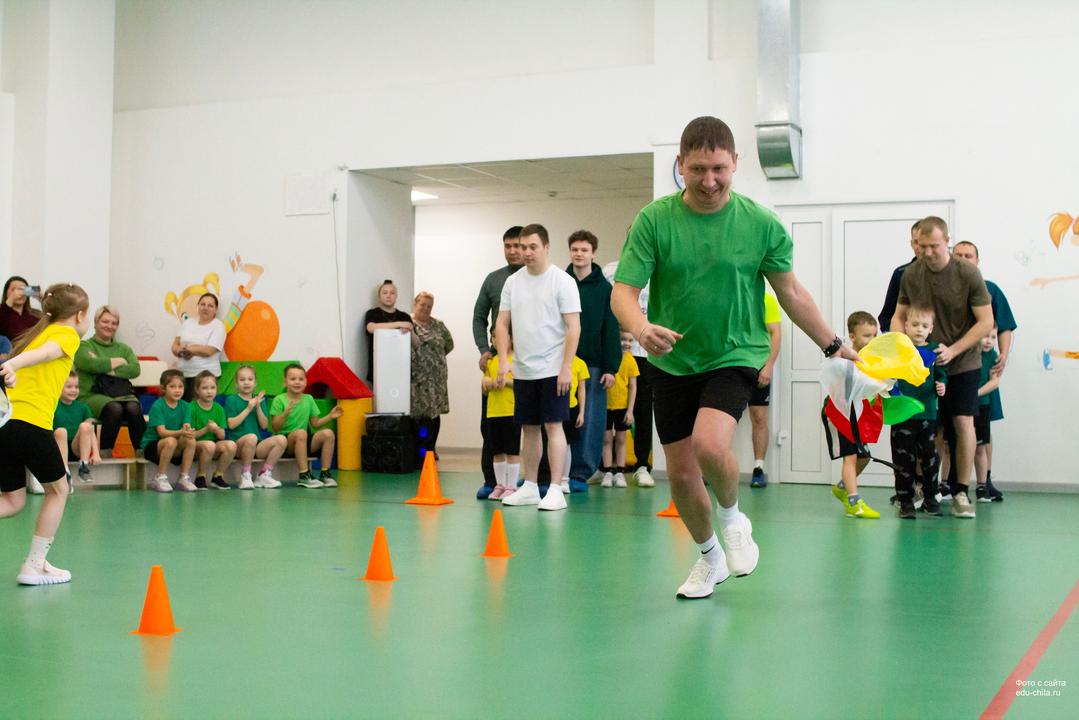 Праздник начался с исполнения песни, а также ребята прочитали стихи и подарили гостям танец. А дальше начался семейный тимбилдинг — формат, который объединил пап и детей в настоящие команды. Папы и ребята проходили спортивные этапы, поддерживали друг друга, смеялись, старались и вместе шли к финишу. В заданиях было всё: скорость, ловкость, командный дух и самое главное — искренние эмоции. Перед началом соревнований все гости исполнили зажигательный флешмоб «Танцпол везде» под руководством логопеда Ирины Зарыхты. Особенно ценно было видеть, как папы с азартом включаются в каждое испытание. В завершение соревнований всех участников ждала весёлая дискотека с воздушными шарами и мыльными пузырями.