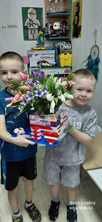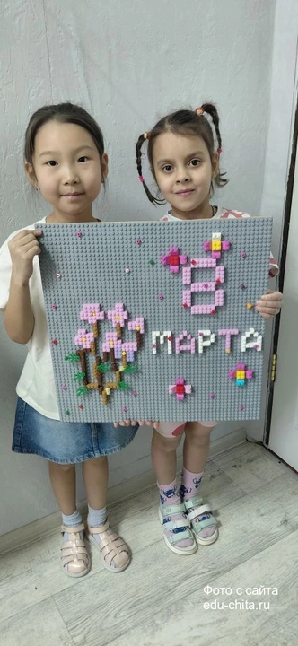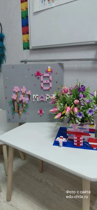 Воспитанники создали объемные цветочные композиции и сюжетные поздравительные изображения из конструктора, которые станут приятным подарком для их матерей.
